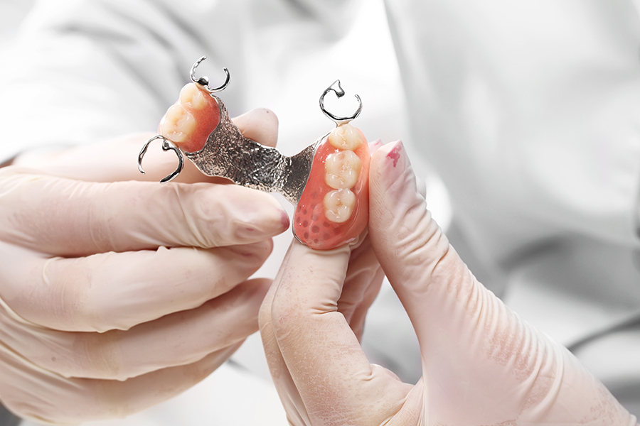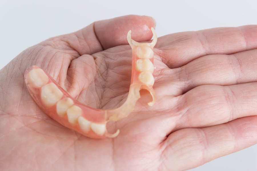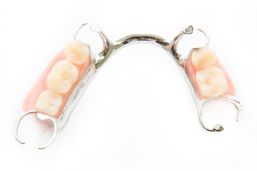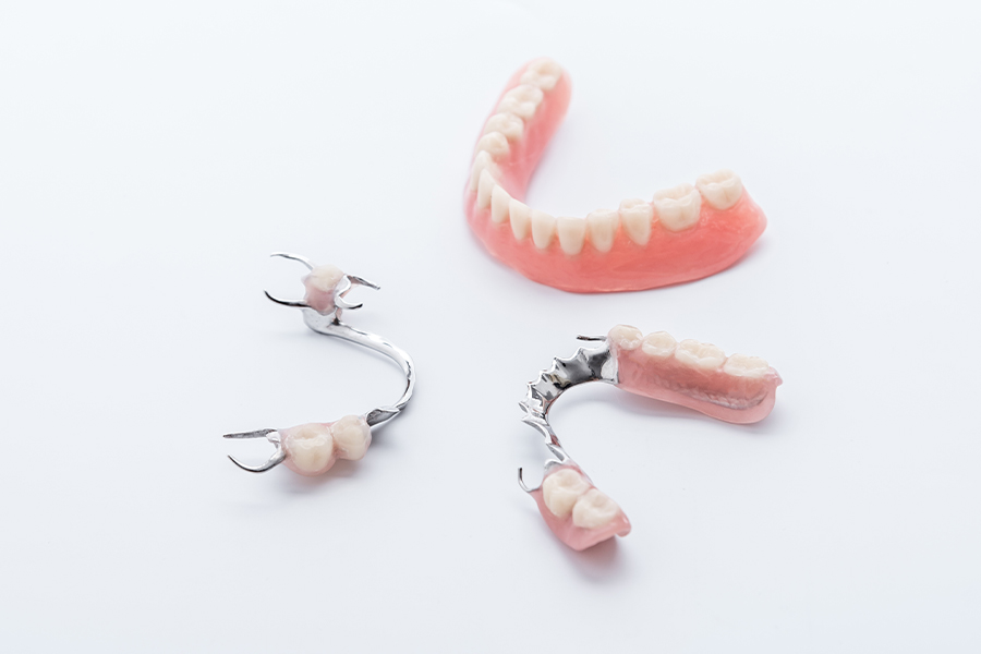 歯を失った部分にのみ使用する入れ歯です。歯が1本でも残っていれば、部分入れ歯を作ることになります。 残っている健康な歯を利用して入れ歯を固定します。