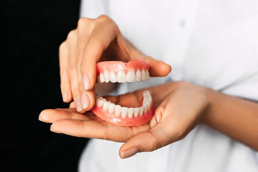 全ての歯を失ってしまった場合に使う入れ歯です。顎の裏面も覆うような大きな入れ歯のことを指します。全ての歯を人工歯によって補います。