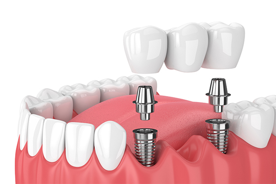 インプラント治療とは、歯が失われてしまった部分に人工の歯を埋入する治療のことです。人工の歯根を顎の骨の中に埋め込み、その上に人工の歯を固定します。