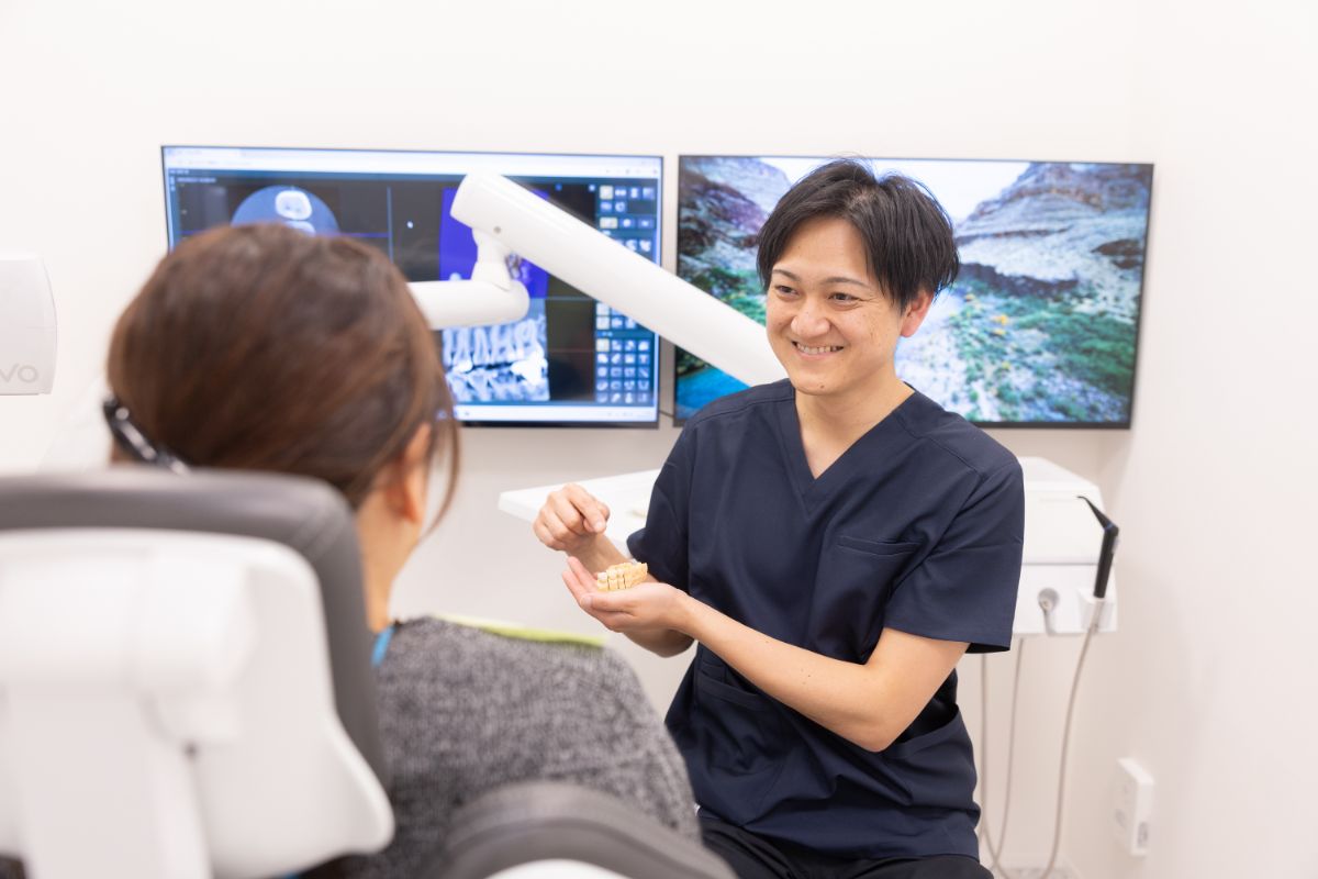 インプラントを長持ちさせるため、メインテナンス(検診)に定期的に通っていただきます。インプラントのネジの締まり具合を点検したり、噛み合わせの調整も必要になります。