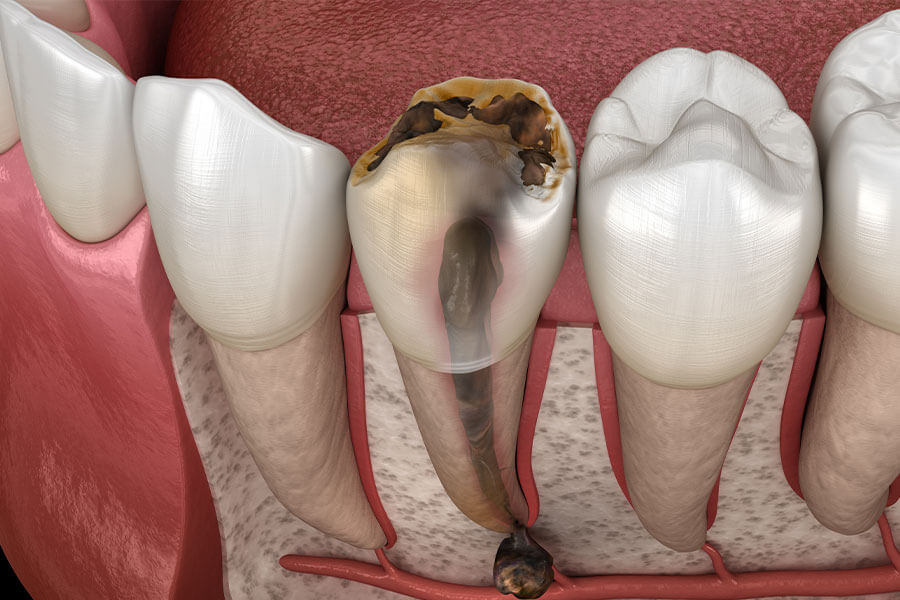この細菌は自然に治ることがないため、根管治療をして機械的に細菌を取り除き、新たに細菌が入らないように薬を緊密に詰める必要性があります。根管治療をすることで神経が死んでしまった歯でも長く使うことが可能になります。
