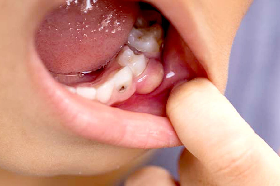 虫歯を放置すると、やがて細菌が出す毒素や細菌自体が歯の内部にある歯の神経(歯髄)まで到達し、いわゆる虫歯の激痛を引き起こします。また症状がさらに進みますと、歯に触れただけで痛んだり、腫れを伴うこととなります。